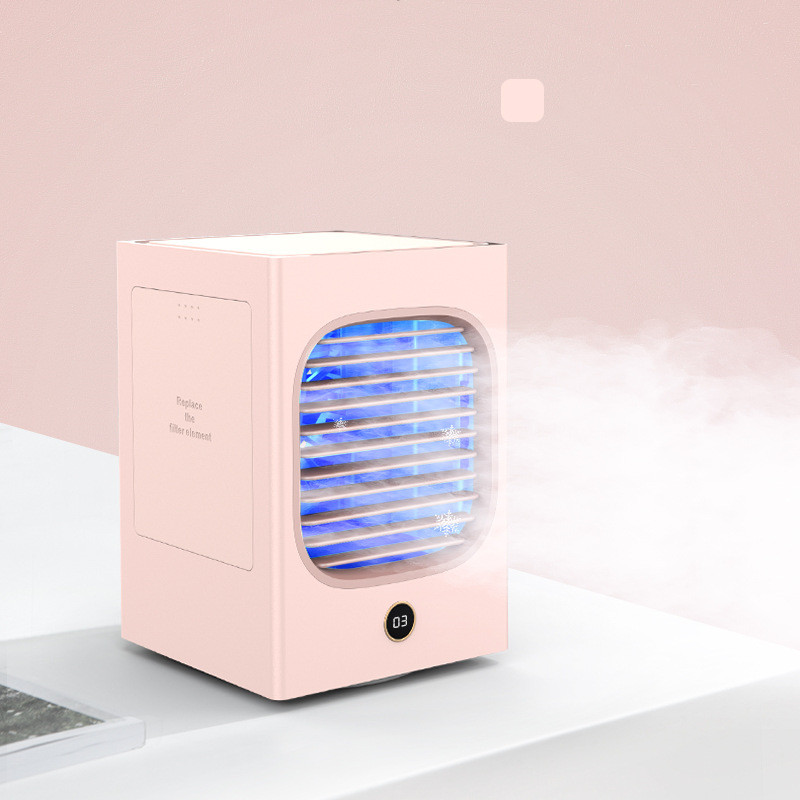 Available in three stylish colors: White, Pink, and Navy Blue, this mini air conditioner fan is not just efficient but also a great addition to your decor. It has compact dimensions of 140mm in height, 212mm in length, and 130mm in width, making it easy to store and transport.